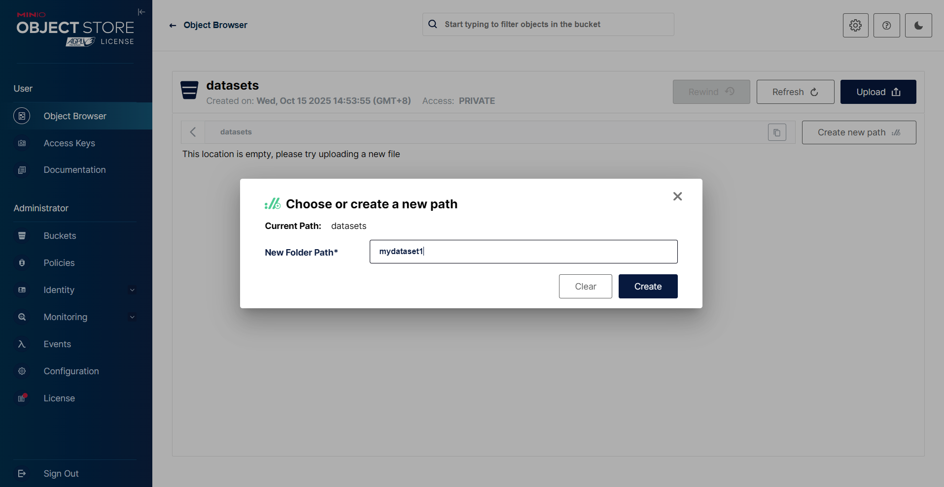 此时默认已经创建好了minio