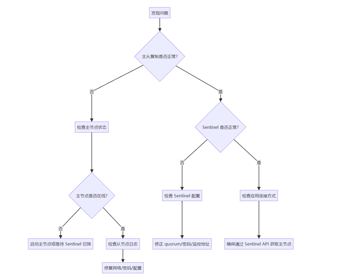 Q7: 主节点恢复后会自动变回主节点吗?A: 不会。原主节点恢复后自动变为从节点。如需切回,手动执行 SENTINEL failover mymaster。